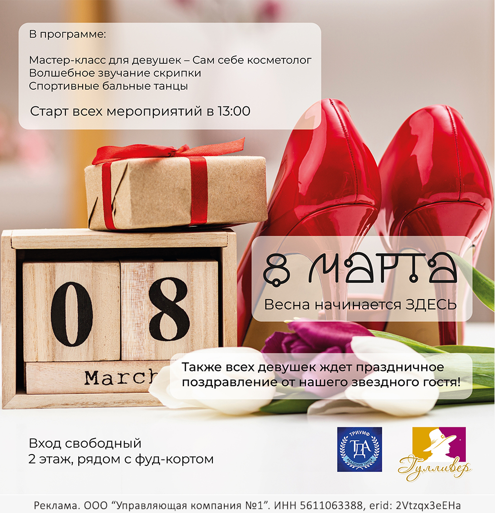 8 марта с 13:00 мы будем поздравлять прекрасных девочек, девушек, женщин с Международным женским днем: