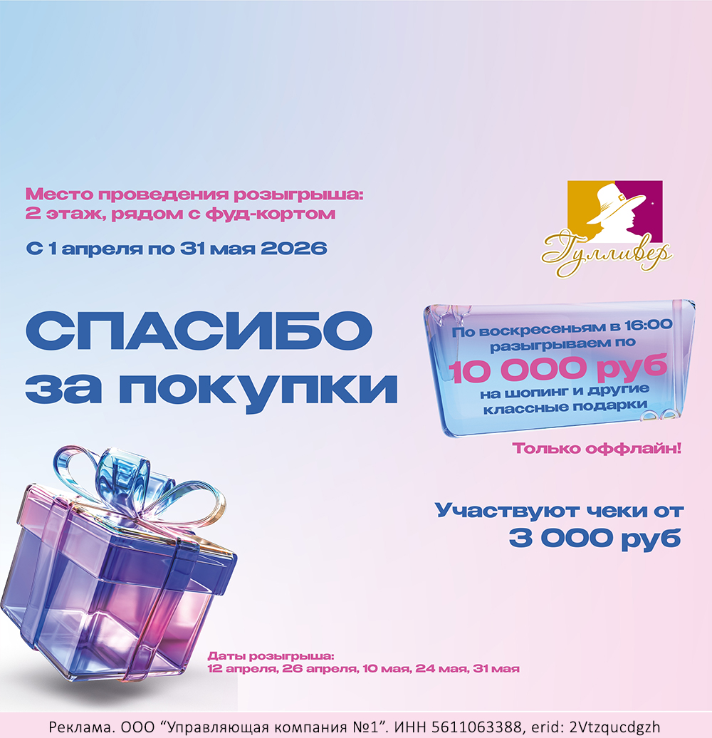 *Подробности и условия акции можно узнать на стойке информации — ТРК Гулливер, 1 этаж, 2 вход